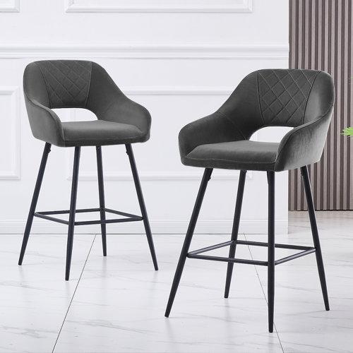 Luxurious velvet bar stools with armrests, perfect for kitchen islands or bars.